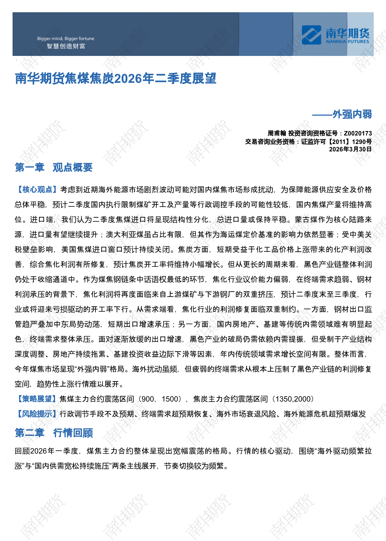 南华期货-焦煤焦炭2026年二季度展望:外强内弱-260330