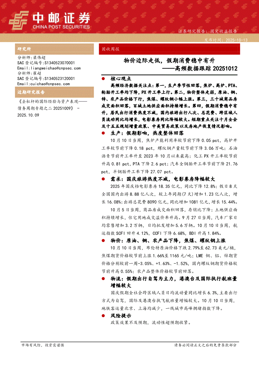 中邮证券-高频数据跟踪:物价边际走低,假期消费稳中有升-251013