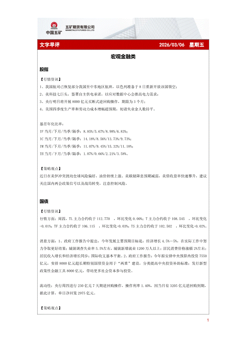 五矿期货-文字早评-260306
