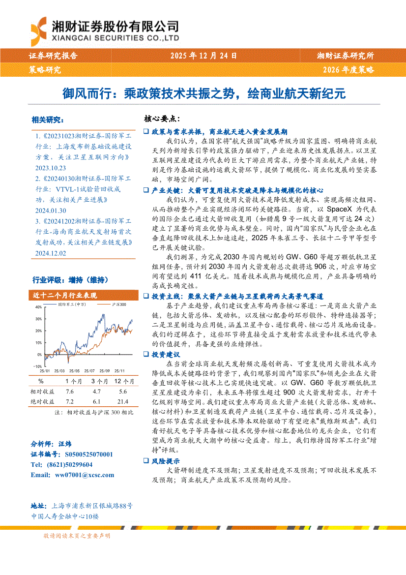 国防军工行业:湘财证券-国防军工行业2026年度策略:御风而行,乘政策技术共振之势,绘商业航天新纪元-251224