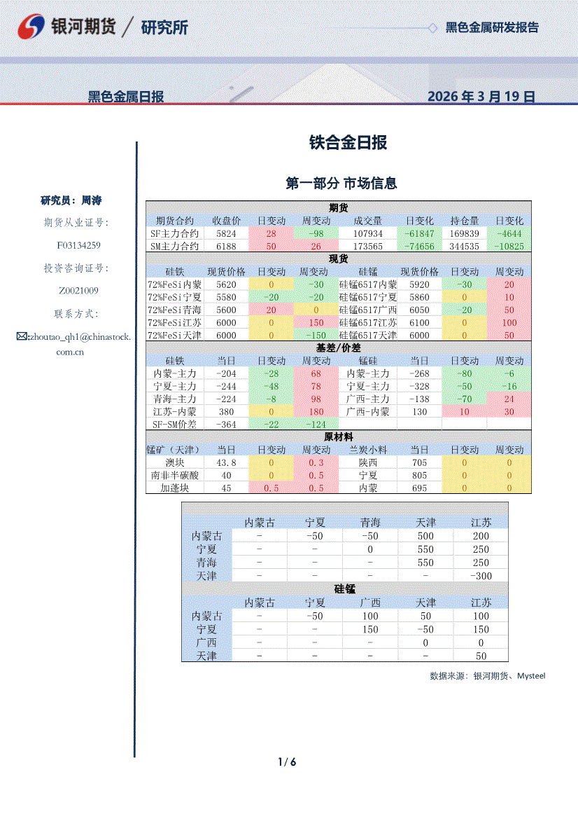 银河期货-铁合金日报-260319
