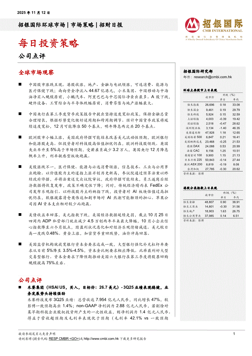 光大证券(国际)-大行晨报:政府停摆结束或利淡美元-251112