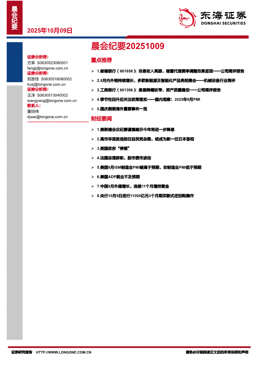 东海证券-晨会纪要-251009
