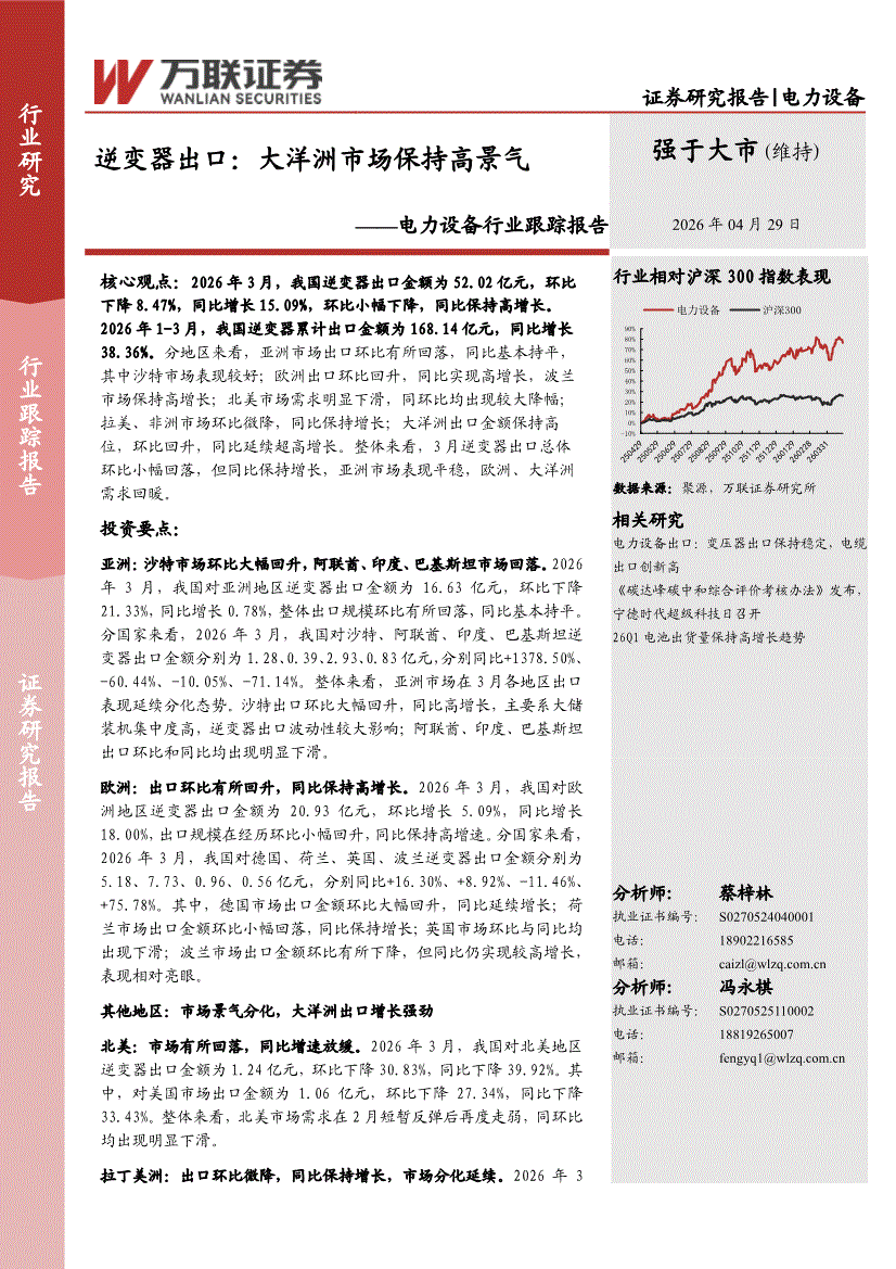 电力设备行业:万联证券-电力设备行业跟踪报告:逆变器出口,大洋洲市场保持高景气-260429
