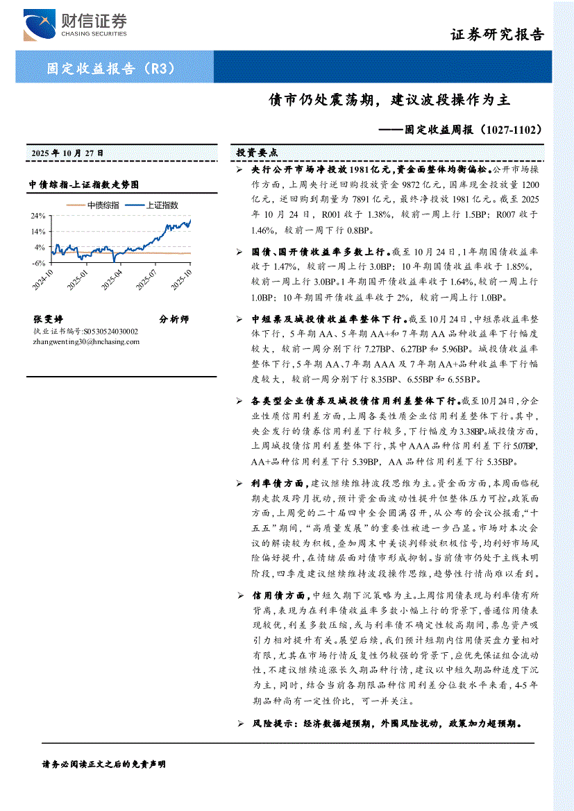 财信证券-固定收益周报:债市仍处震荡期,建议波段操作为主-251027