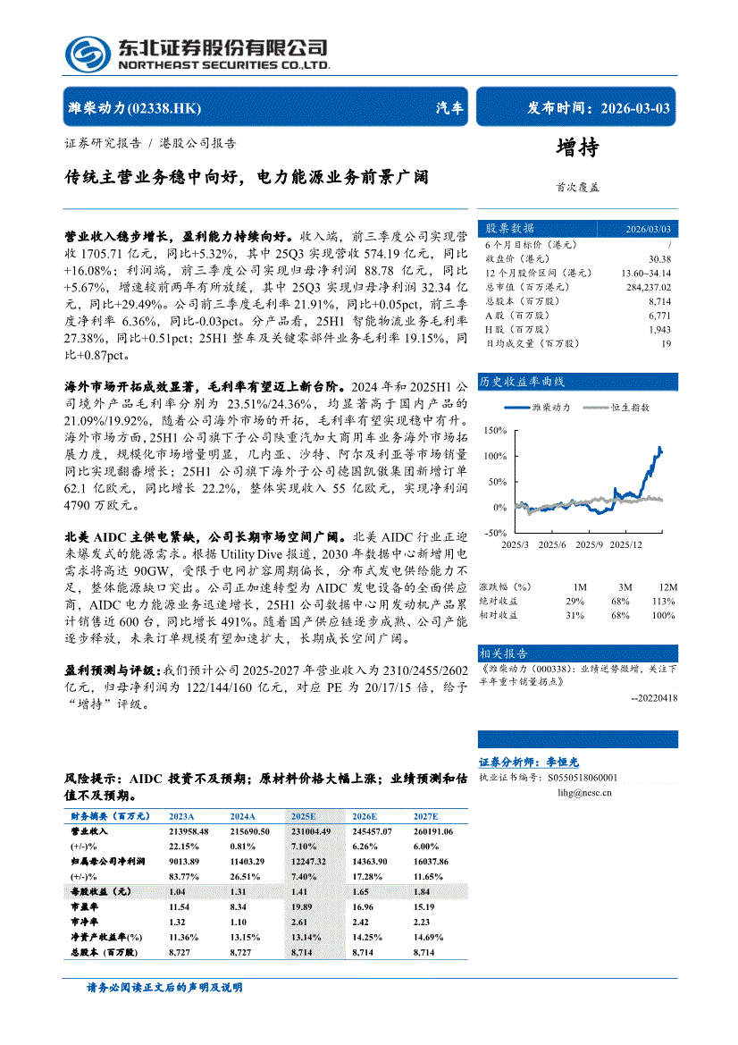 潍柴动力:东北证券-潍柴动力-2338.HK-传统主营业务稳中向好,电力能源业务前景广阔-260303