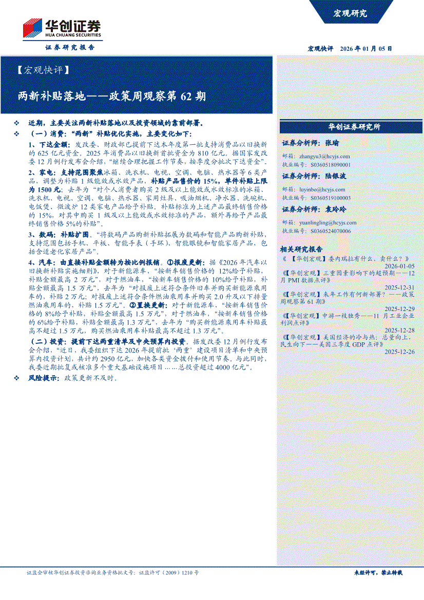 华创证券-【宏观快评】两新补贴落地——政策周观察第62期-260105