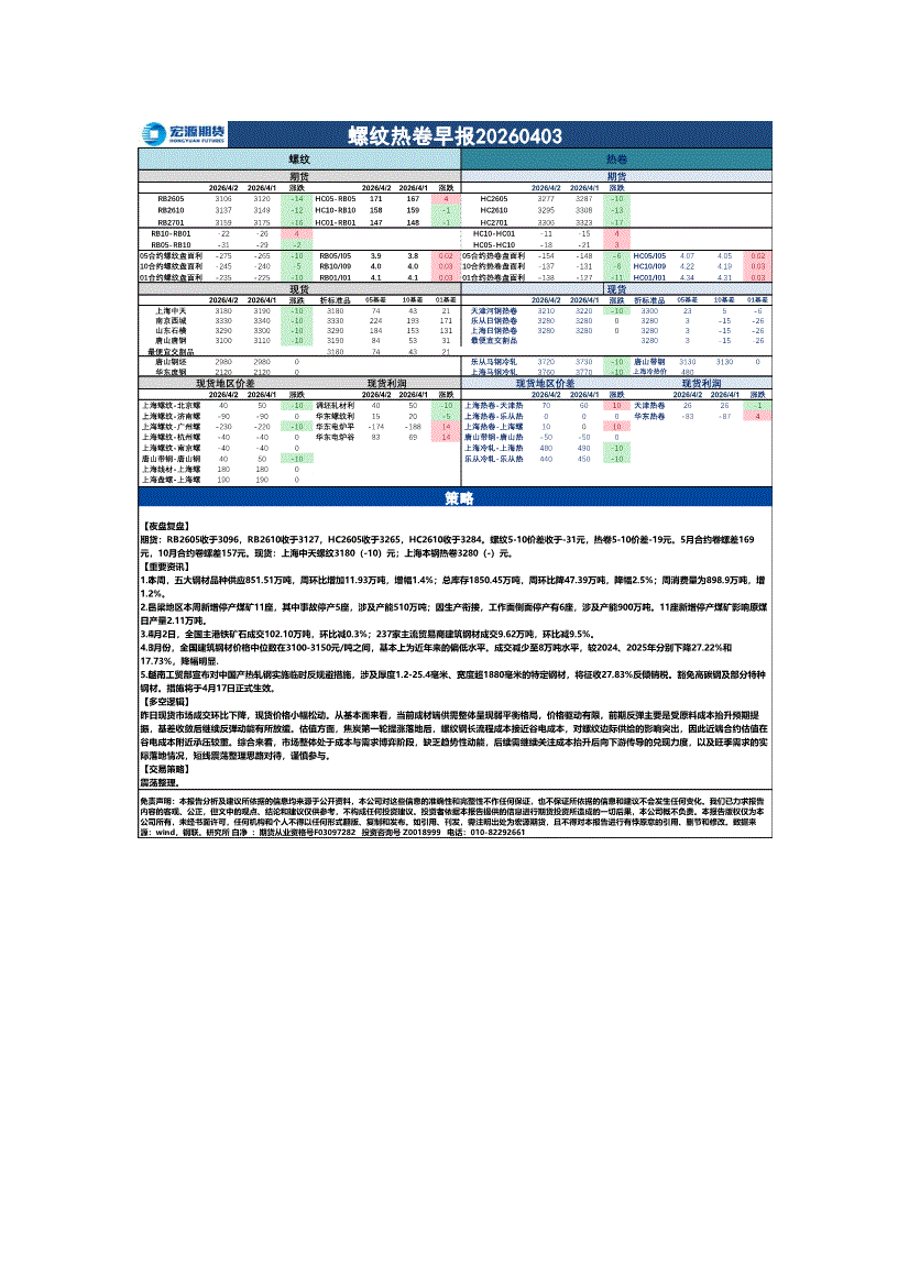 宏源期货-螺纹热卷早报-260403
