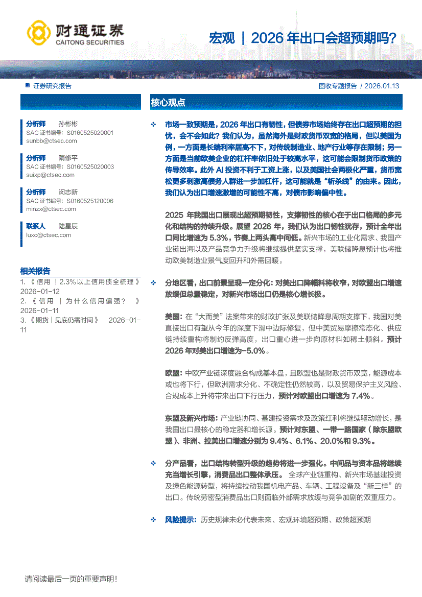 财通证券-宏观|2026年出口会超预期吗?-260113
