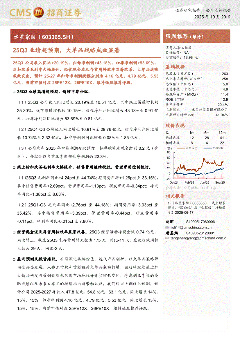 水星家纺:招商证券-水星家纺-603365-25Q3业绩超预期,大单品战略成效显著-251029