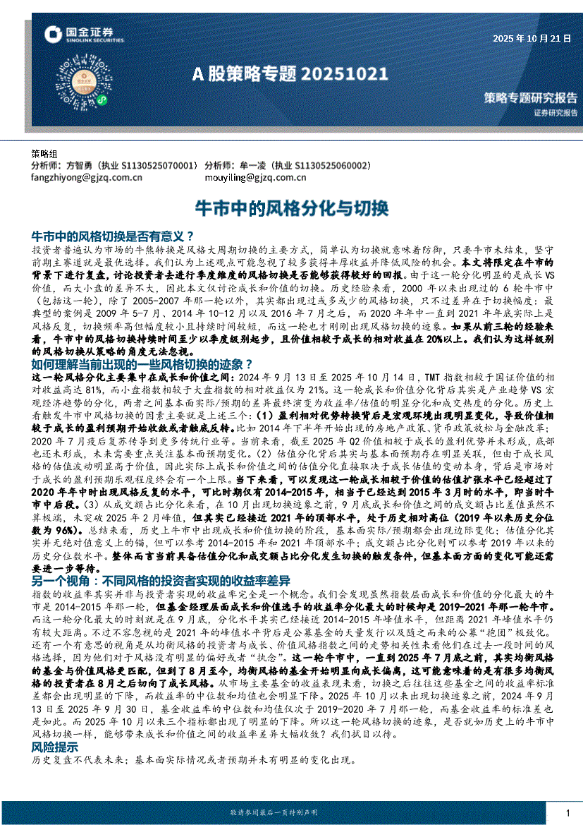 国金证券-A股策略专题:牛市中的风格分化与切换-251021