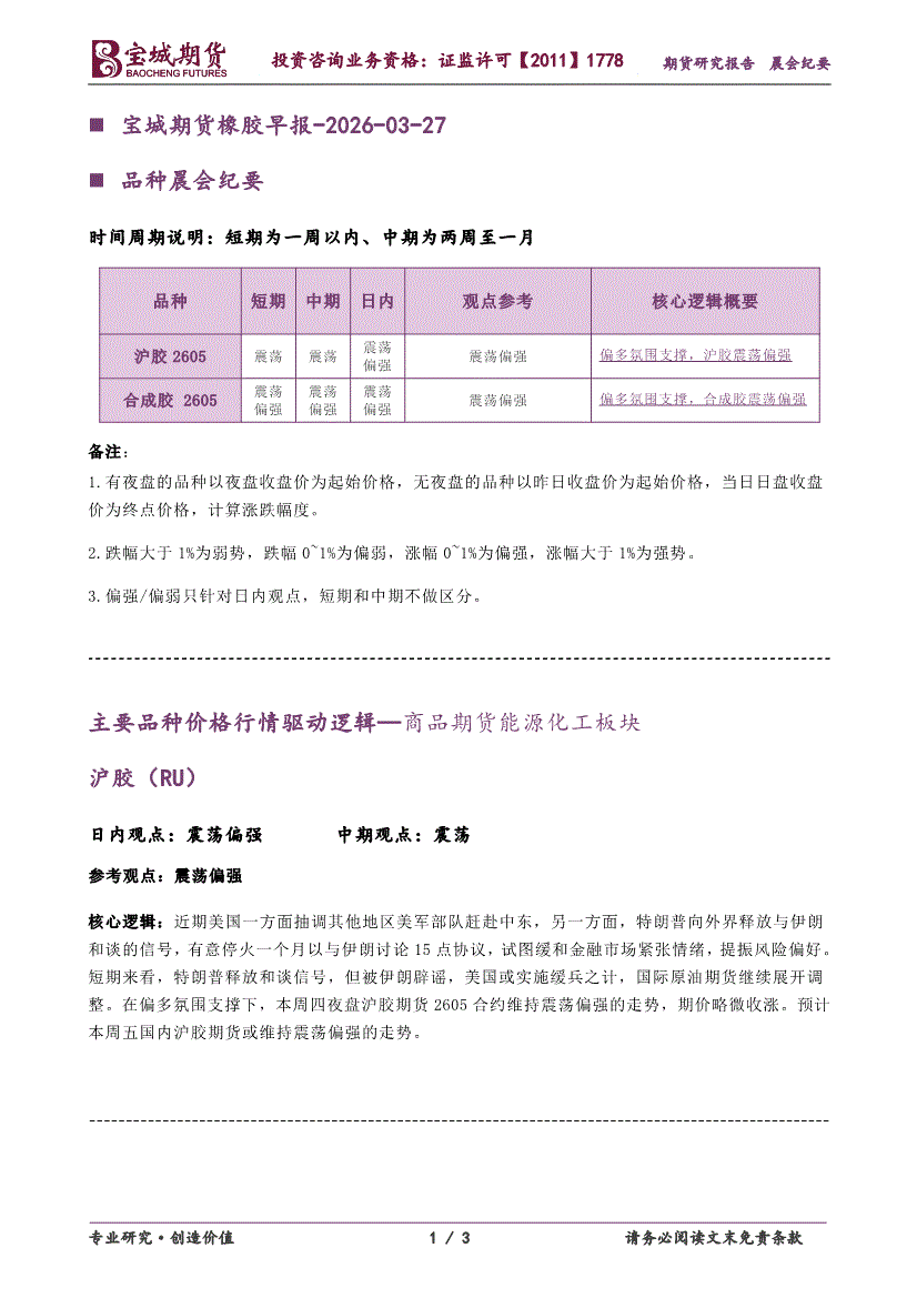 宝城期货-橡胶早报-260327