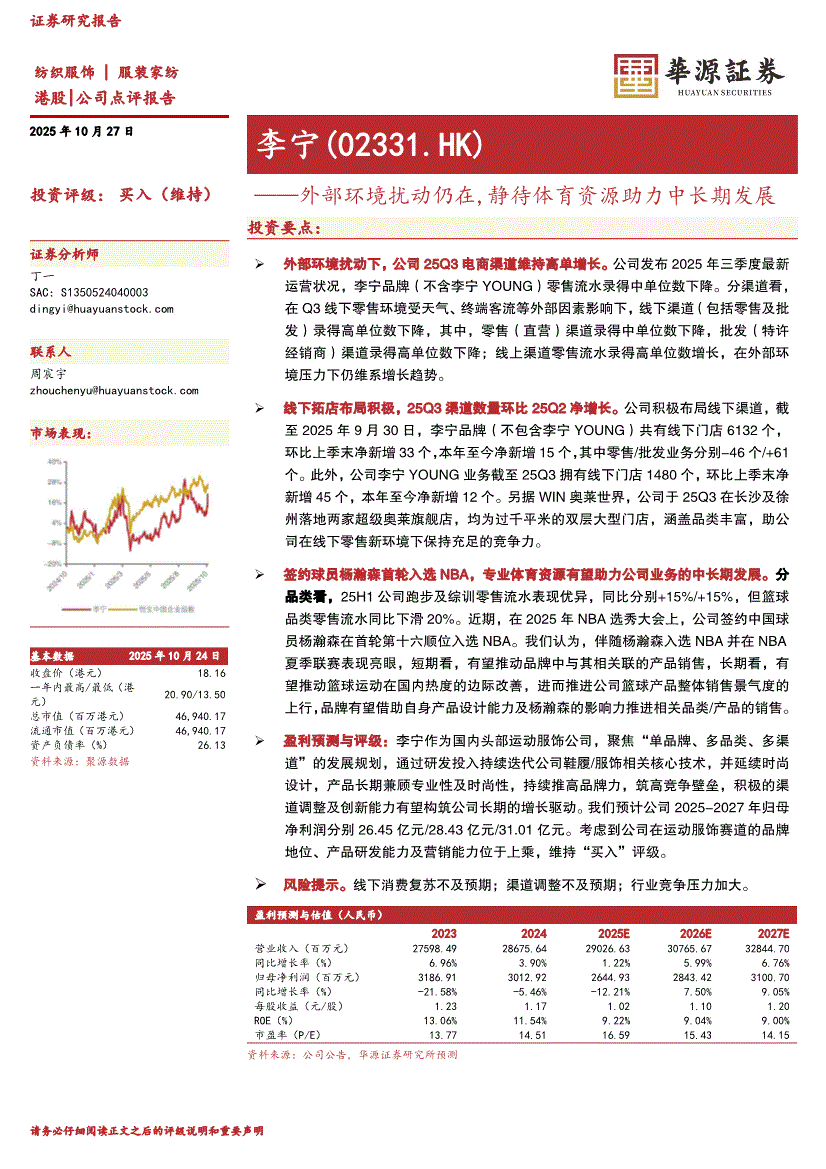 李宁:华源证券-李宁-2331.HK-外部环境扰动仍在,静待体育资源助力中长期发展-251027
