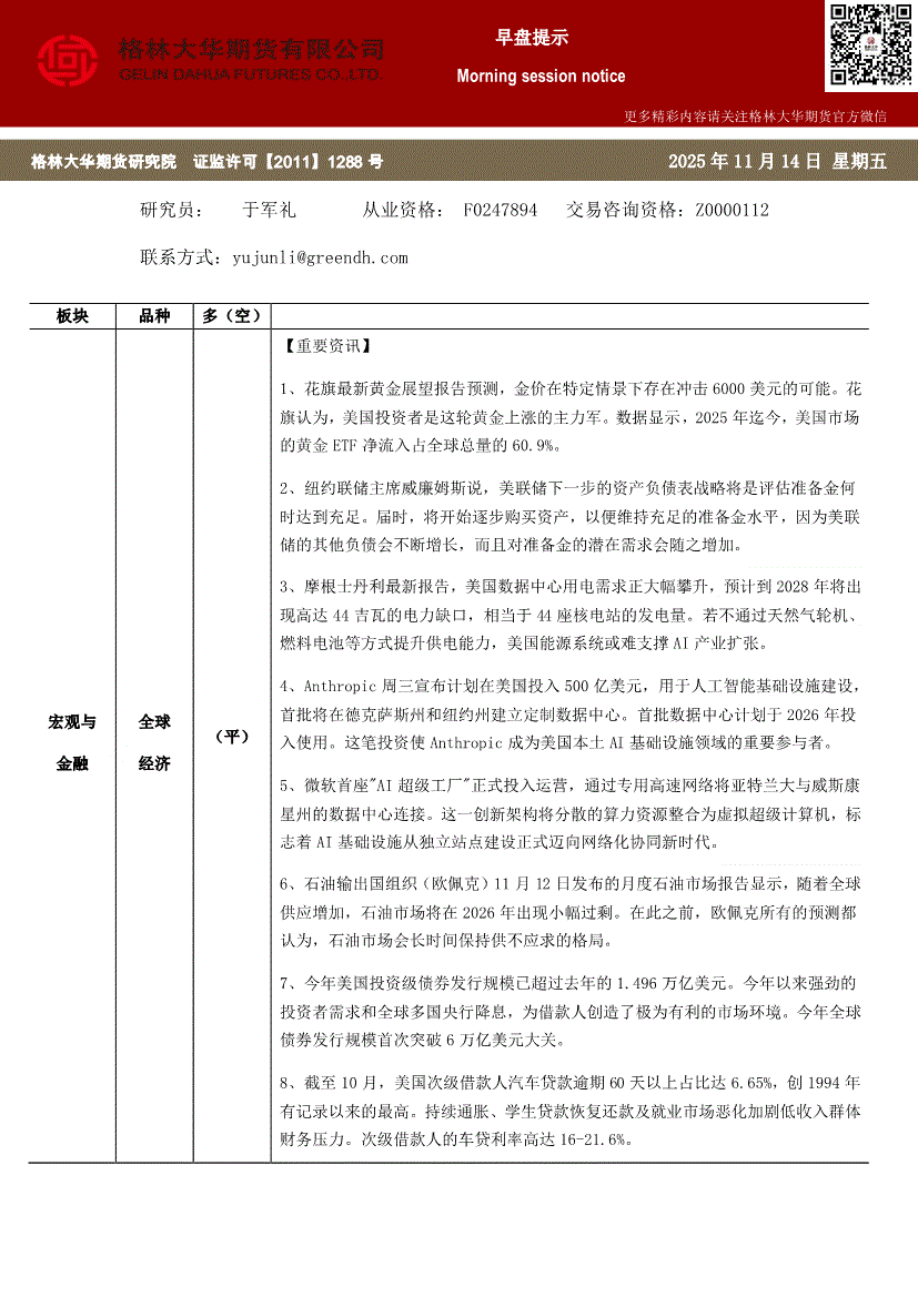 格林大华期货-一周简评:沪银创新高,白银库存持续下降-251114