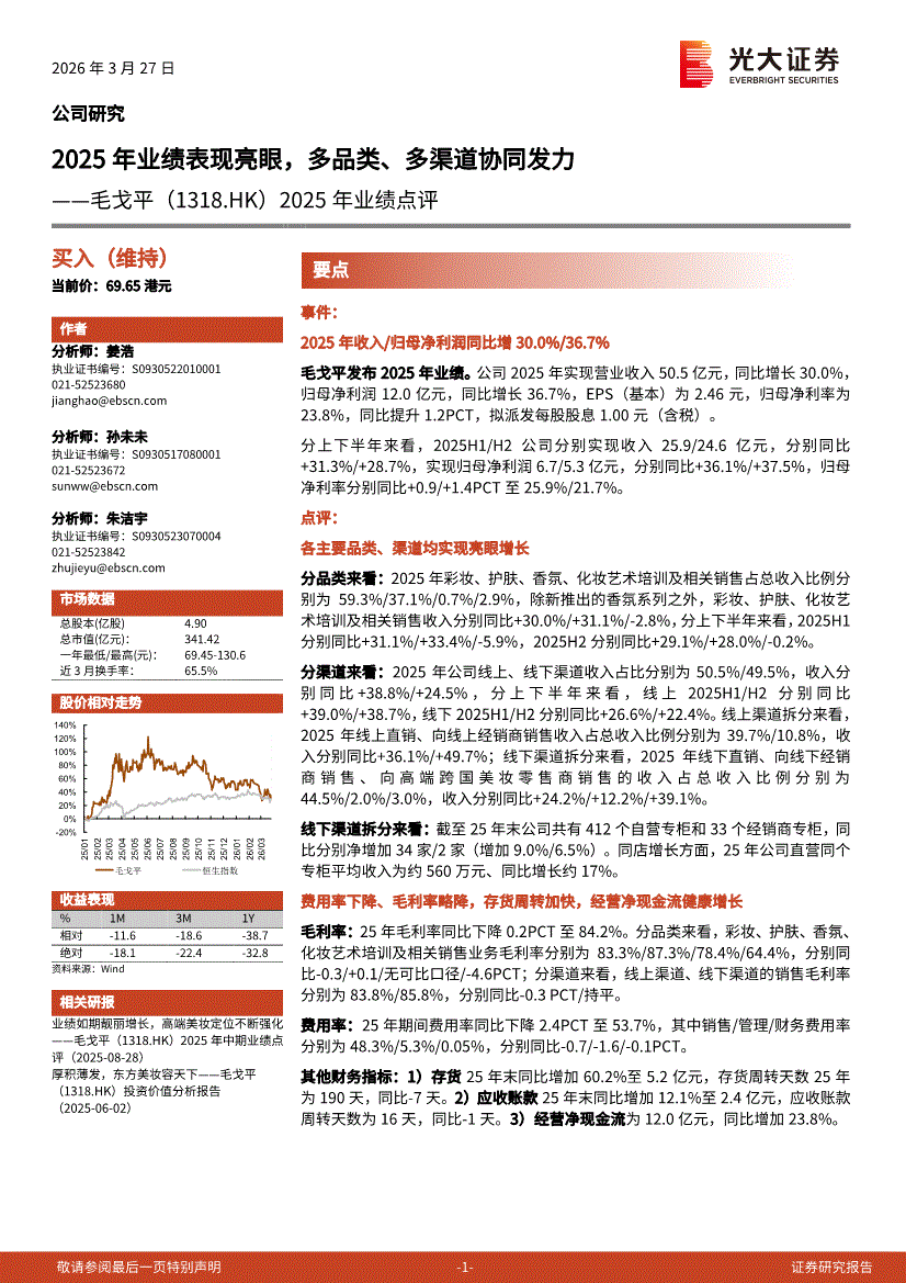 毛戈平:光大证券-毛戈平-1318.HK-2025年业绩点评:2025年业绩表现亮眼,多品类、多渠道协同发力-260327