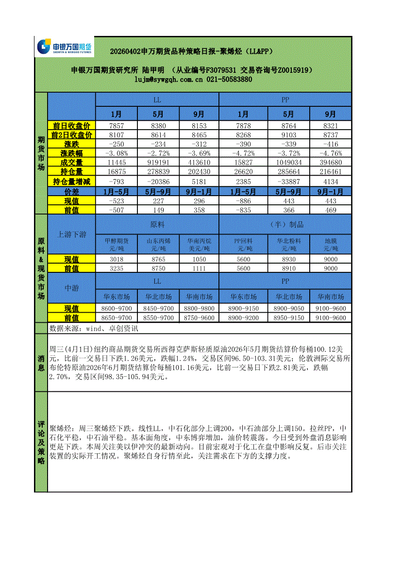 申银万国期货-品种策略日报:聚烯烃(LL&PP)-260402
