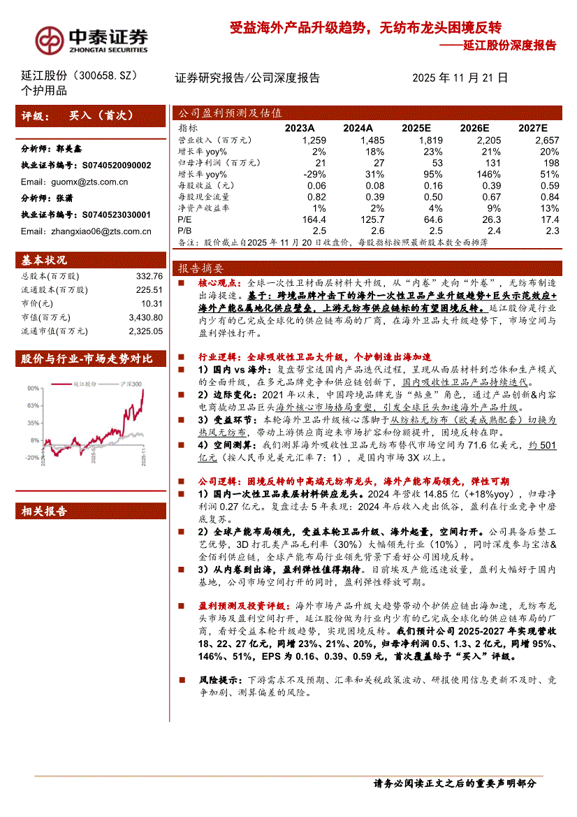 延江股份:中泰证券-延江股份-300658-深度报告:受益海外产品升级趋势,无纺布龙头困境反转-251121