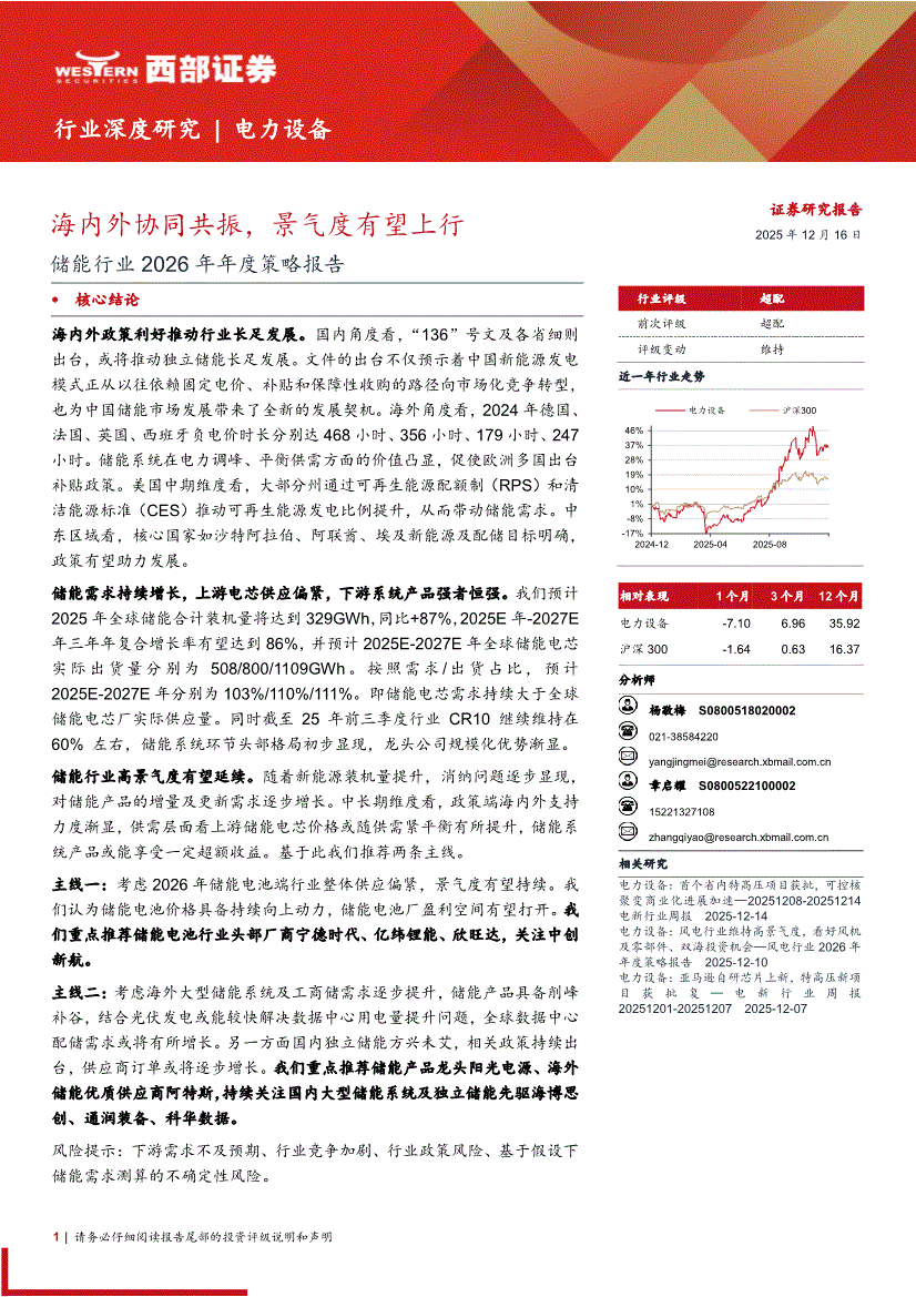 储能行业:西部证券-储能行业2026年年度策略报告:海内外协同共振,景气度有望上行-251216