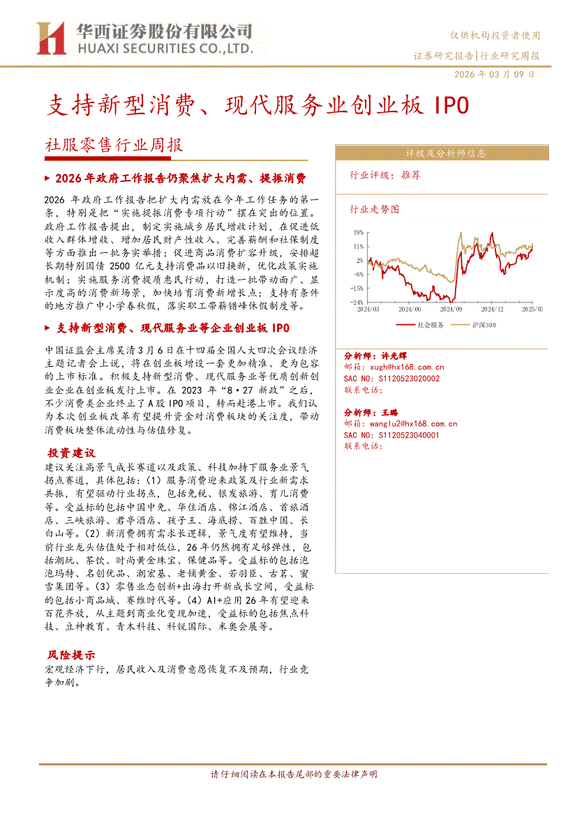社服零售行业:华西证券-社服零售行业周报:支持新型消费、现代服务业创业板IPO-260309