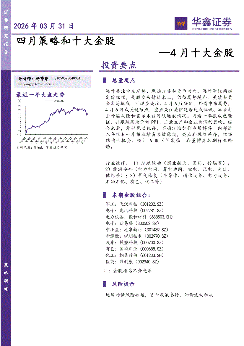 华鑫证券-4月十大金股:四月策略和十大金股-260331