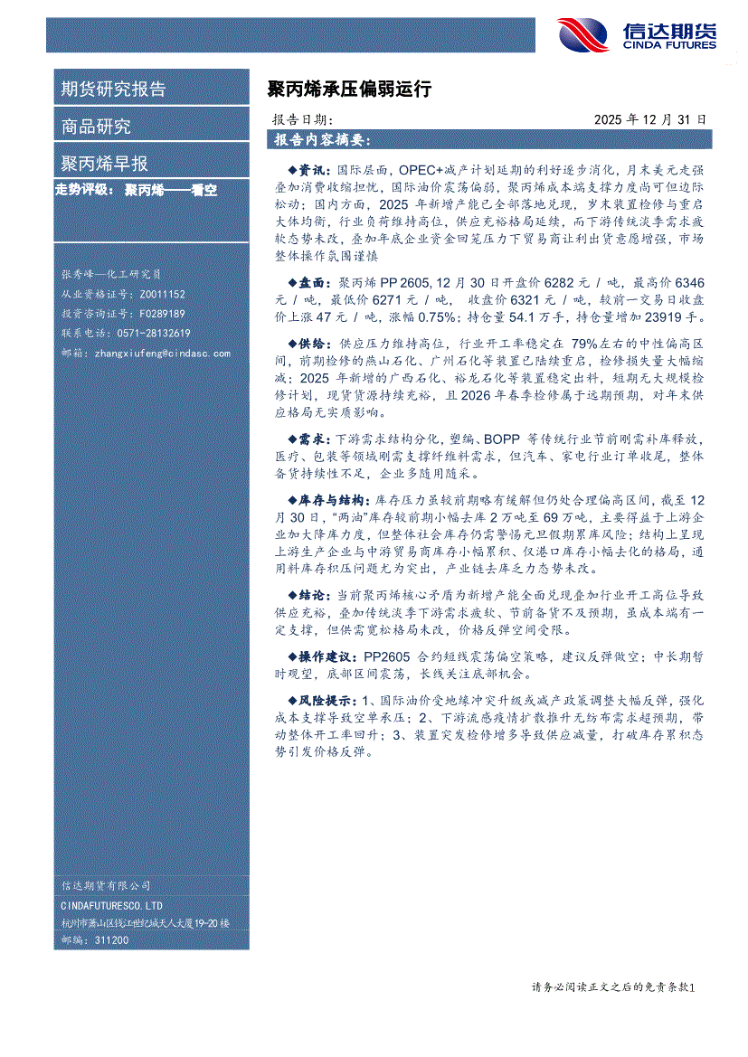 信达期货-聚丙烯早报:聚丙烯承压偏弱运行-251231