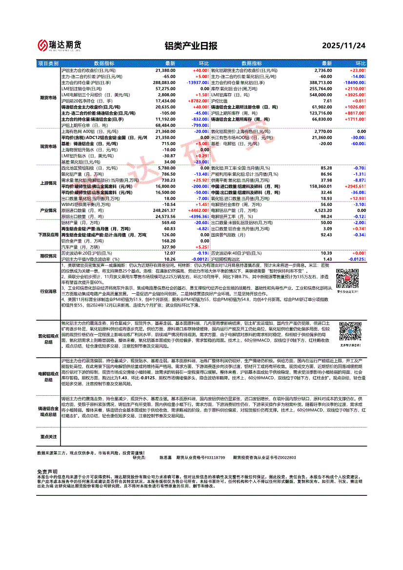 瑞达期货-铝类产业日报-251124