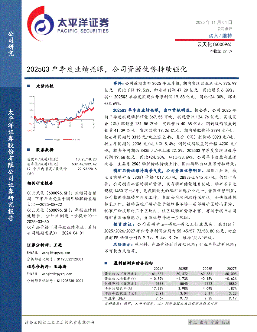 云天化:太平洋证券-云天化-600096-2025Q3单季度业绩亮眼,公司资源优势持续强化-251104