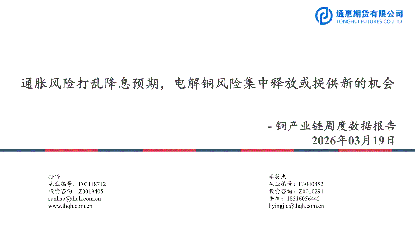通惠期货-铜产业链周度数据报告:通胀风险打乱降息预期,电解铜风险集中释放或提供新的机会-260319