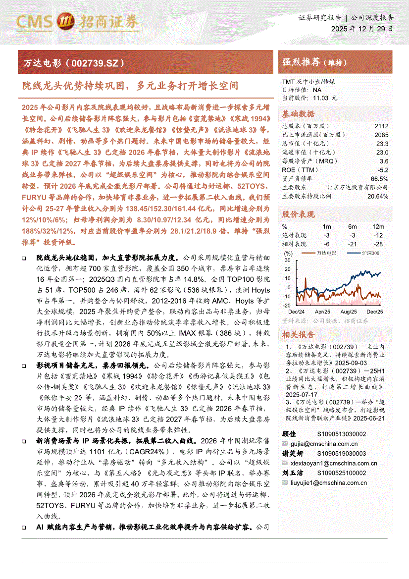 万达电影:招商证券-万达电影-002739-院线龙头优势持续巩固,多元业务打开增长空间-251229