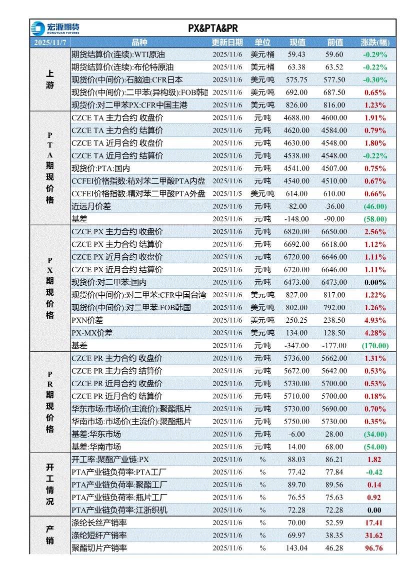 宏源期货-PX&PTA&PR早评-251107