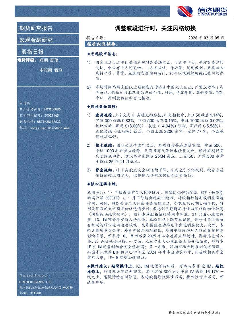 信达期货-股指日报:调整波段进行时,关注风格切换-260205