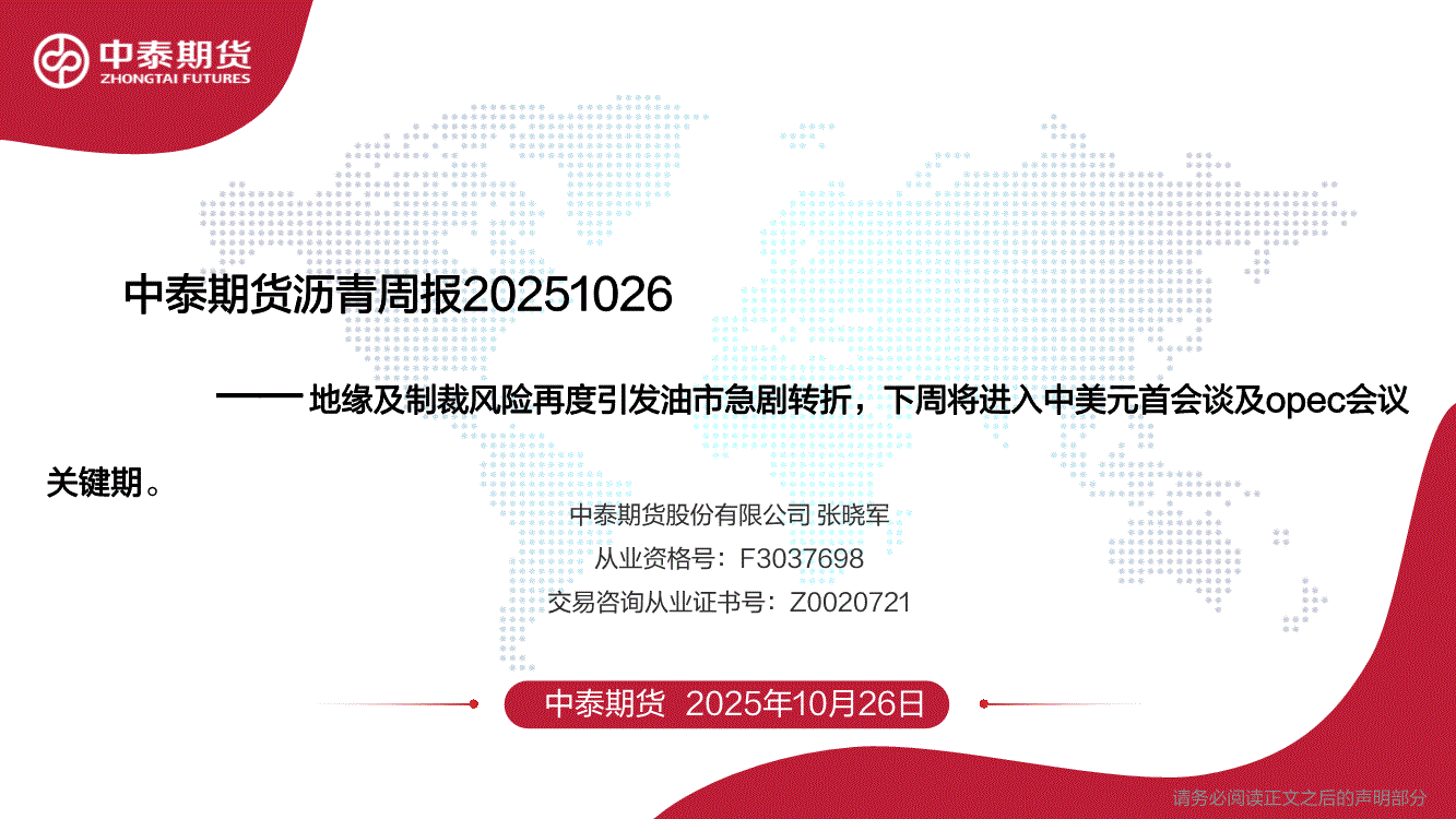 中泰期货-沥青周报:地缘及制裁风险再度引发油市急剧转折,下周将进入中美元首会谈及opec会议关键期-251026