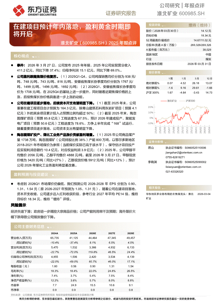 淮北矿业:东方证券-淮北矿业-600985-2025年报点评:在建项目预计年内落地,盈利黄金时期即将开启-260331
