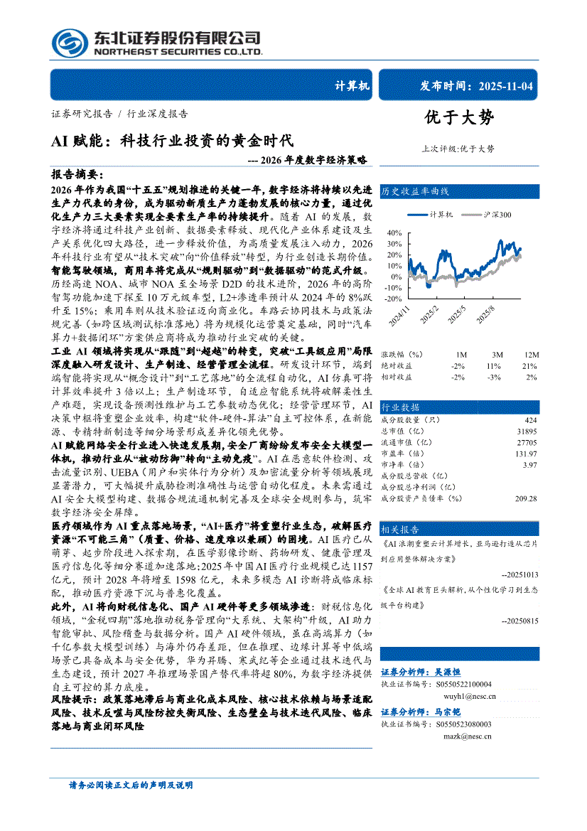 计算机行业:东北证券-计算机行业2026年度数字经济策略:AI赋能,科技行业投资的黄金时代-251104