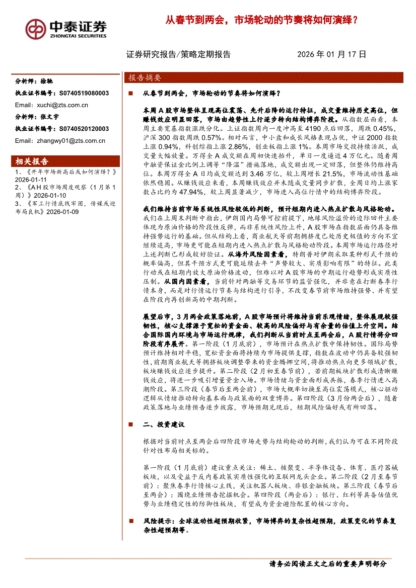 中泰证券-从春节到两会,市场轮动的节奏将如何演绎?-260117