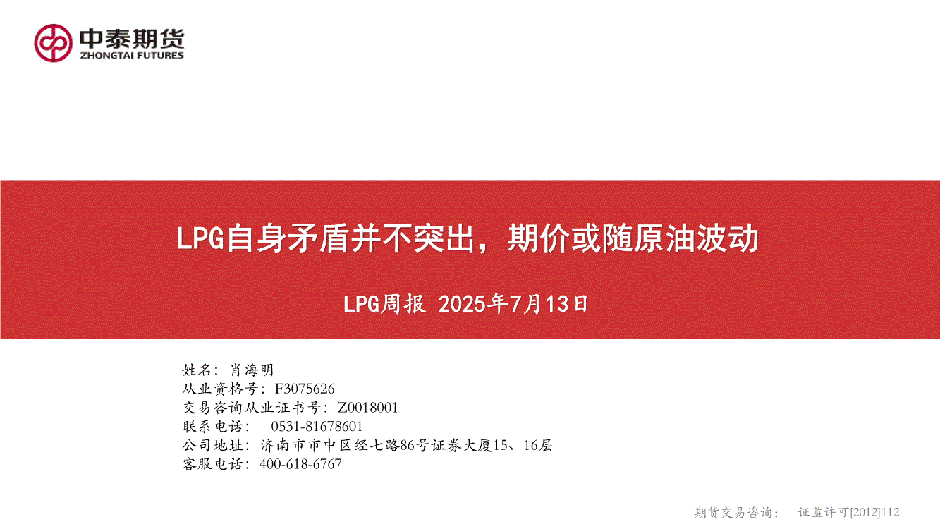 中泰期货-LPG周报:LPG自身矛盾并不突出,期价或随原油波动-250713