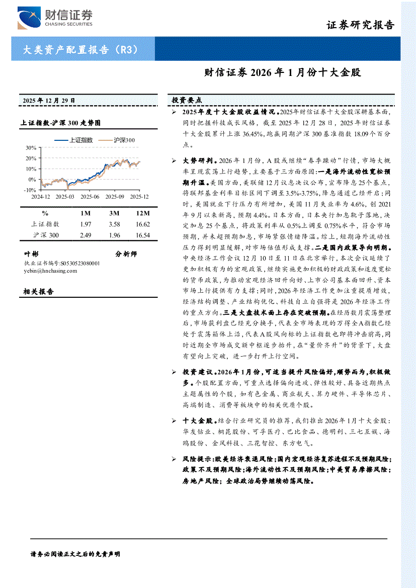 财信证券-大类资产配置报告(R3):2026年1月份十大金股-251229