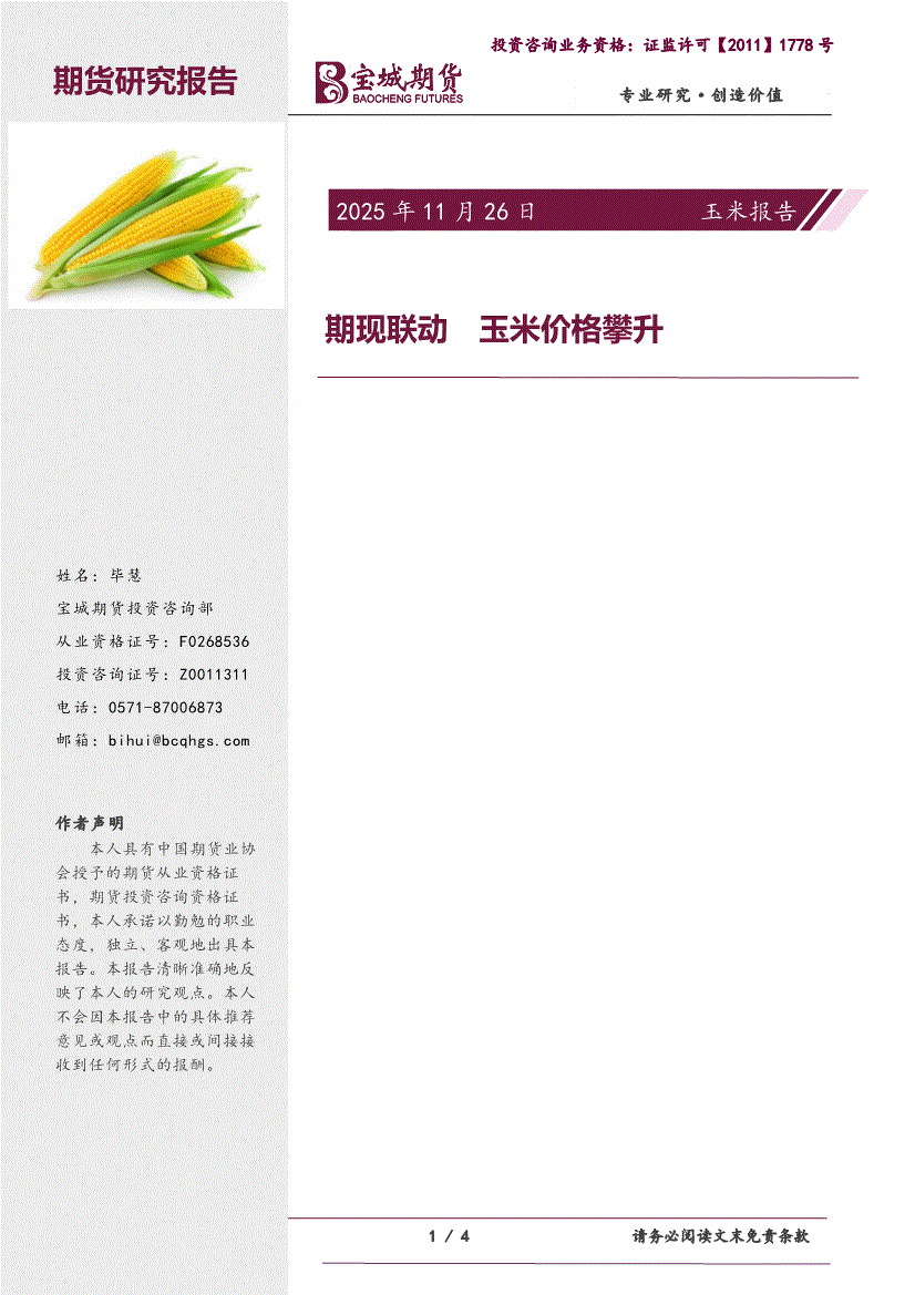 宝城期货-玉米报告:期现联动,玉米价格攀升-251126