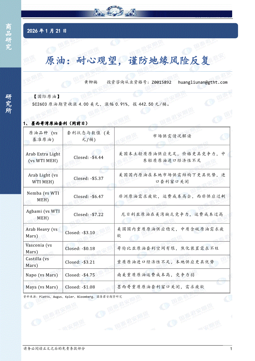 国泰君安期货-原油:耐心观望,谨防地缘风险反复-260121