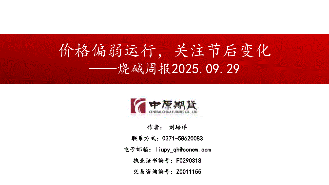 中原期货-烧碱周报:价格偏弱运行,关注节后变化-250929