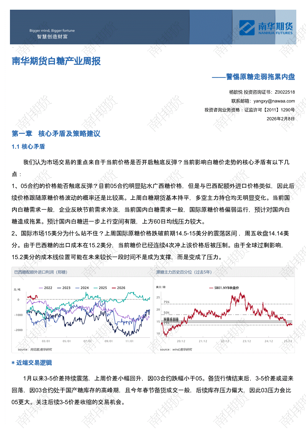 南华期货-白糖产业周报:警惕原糖走弱拖累内盘-260208