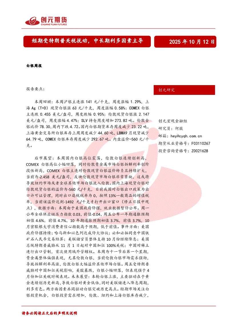创元期货-白银周报:短期受特朗普关税扰动,中长期利多因素主导-251012