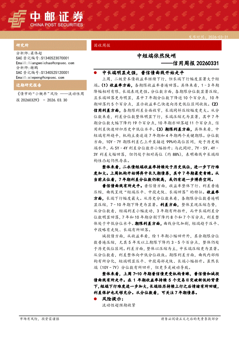 中邮证券-信用周报:中短端依然陡峭-260331