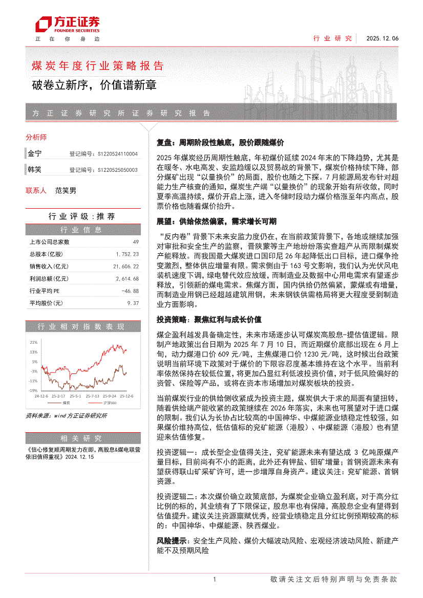 煤炭行业:方正证券-煤炭年度行业策略报告:破卷立新序,价值谱新章-251206