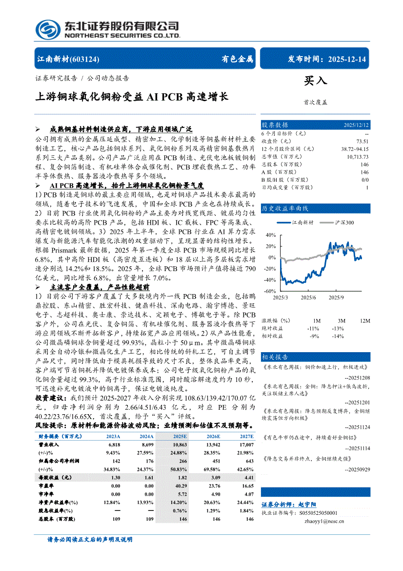 江南新材:东北证券-江南新材-603124-上游铜球氧化铜粉受益AIPCB高速增长-251214