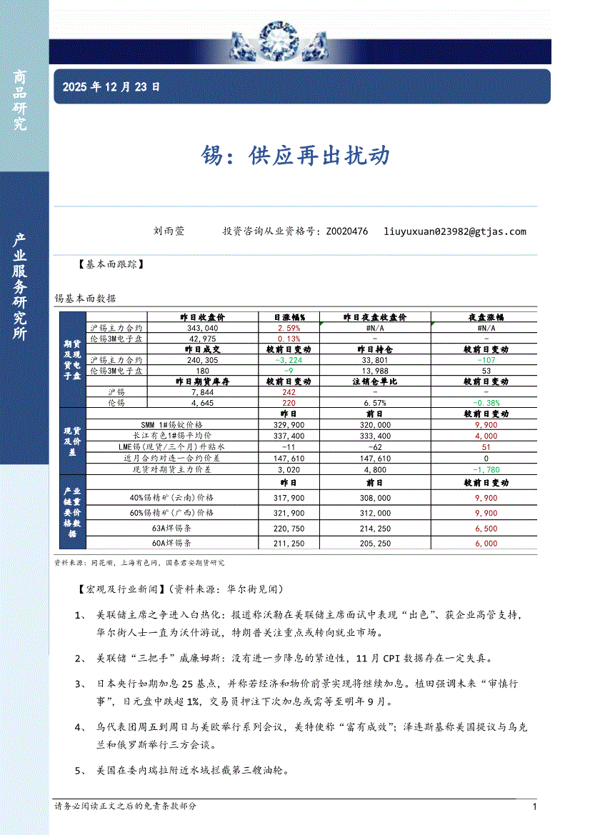 国泰君安期货-有色及贵金属日度数据简报-251218