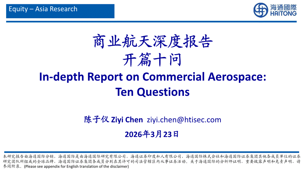商业航天行业:海通国际-商业航天行业深度报告开篇十问-260323