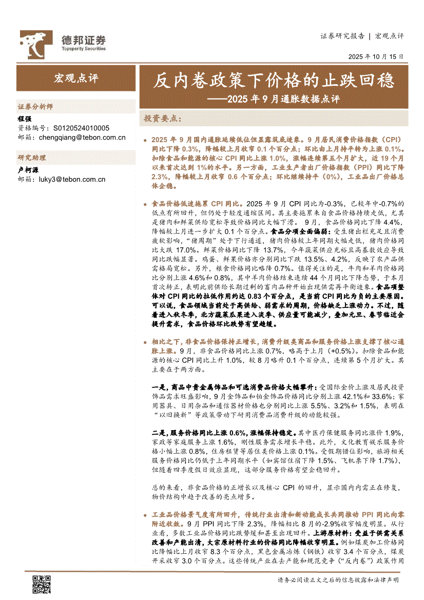 德邦证券-2025年9月通胀数据点评:反内卷政策下价格的止跌回稳-251015