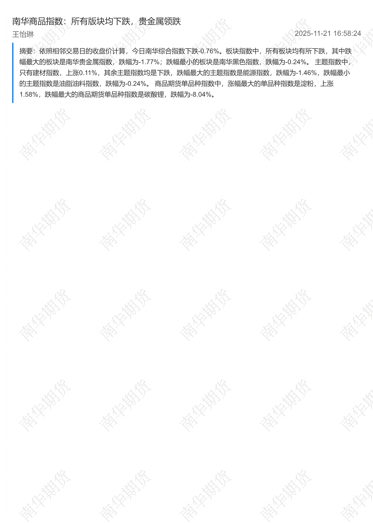 南华期货-商品指数:所有版块均下跌,贵金属领跌-251121