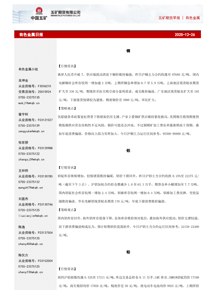 五矿期货-有色金属日报-251226